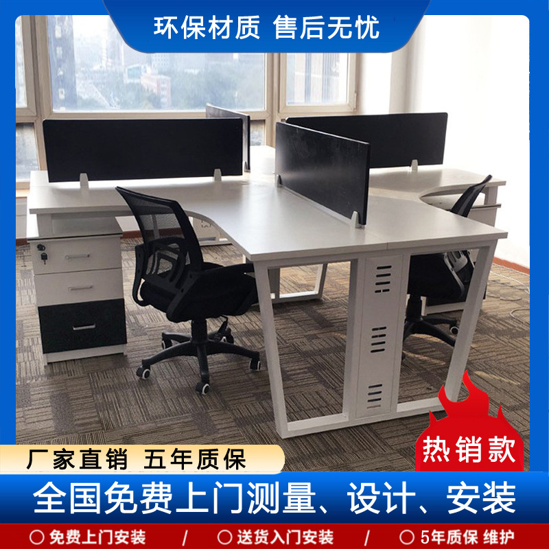 Beijing furnitur kantor meja dan kursi, empat kursi meja staf sudut sederhana bingkai baja untuk staf stasiun staf pemegang kartu kantor
