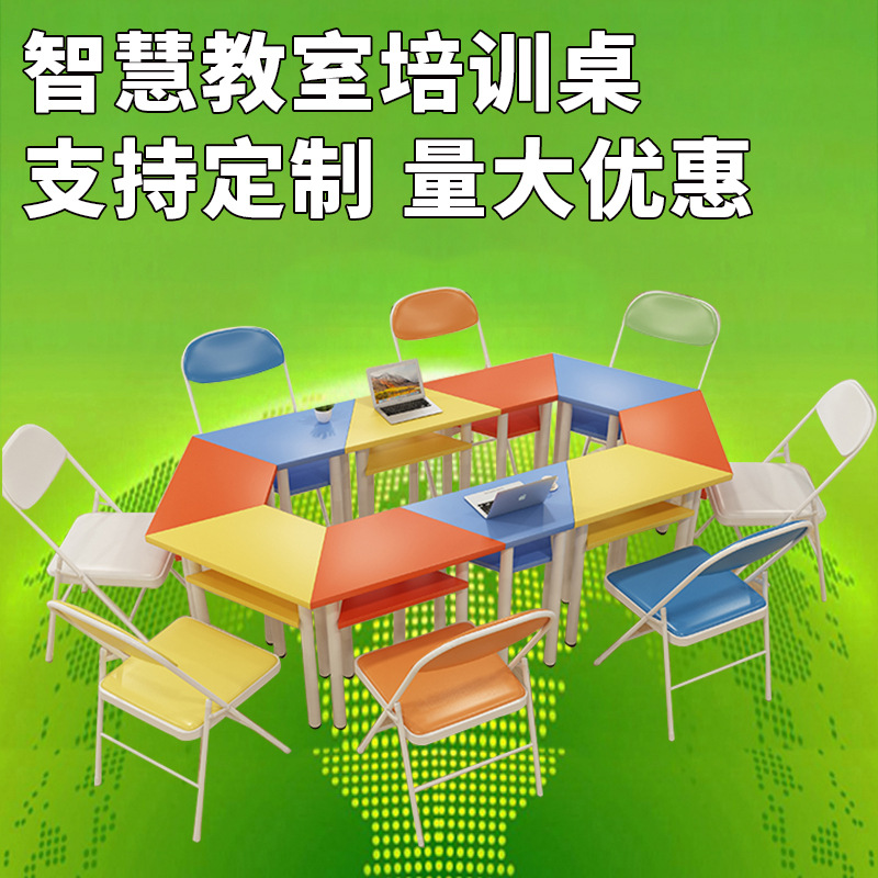 [Kelas pintar] kombinasi meja heksagonal bingkai baja meja komputer ruang kelas heksagonal splicing meja latihan