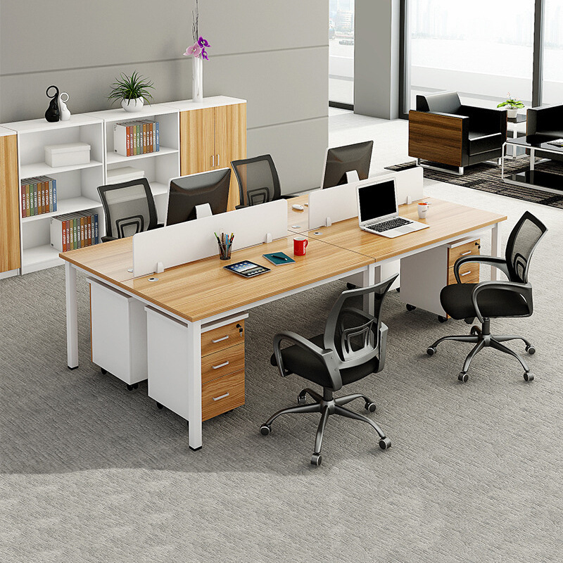 Meja staf, empat kursi layar sederhana stasiun tunggal kayu solid meja kantor kartu ganda meja dan kursi kombinasi