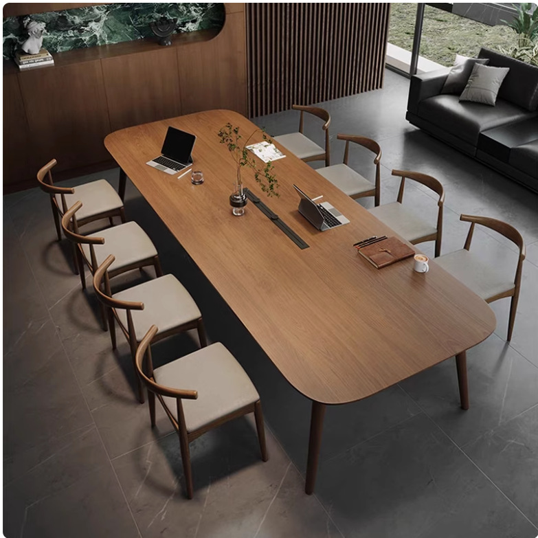 Meja Rapat Kayu Solid Meja Panjang dengan Soket Meja Negosiasi Ruang Rapat Kecil Meja Panjang Meja Kerja Meja Kerja Kombinasi Meja Kerja dan Kursi