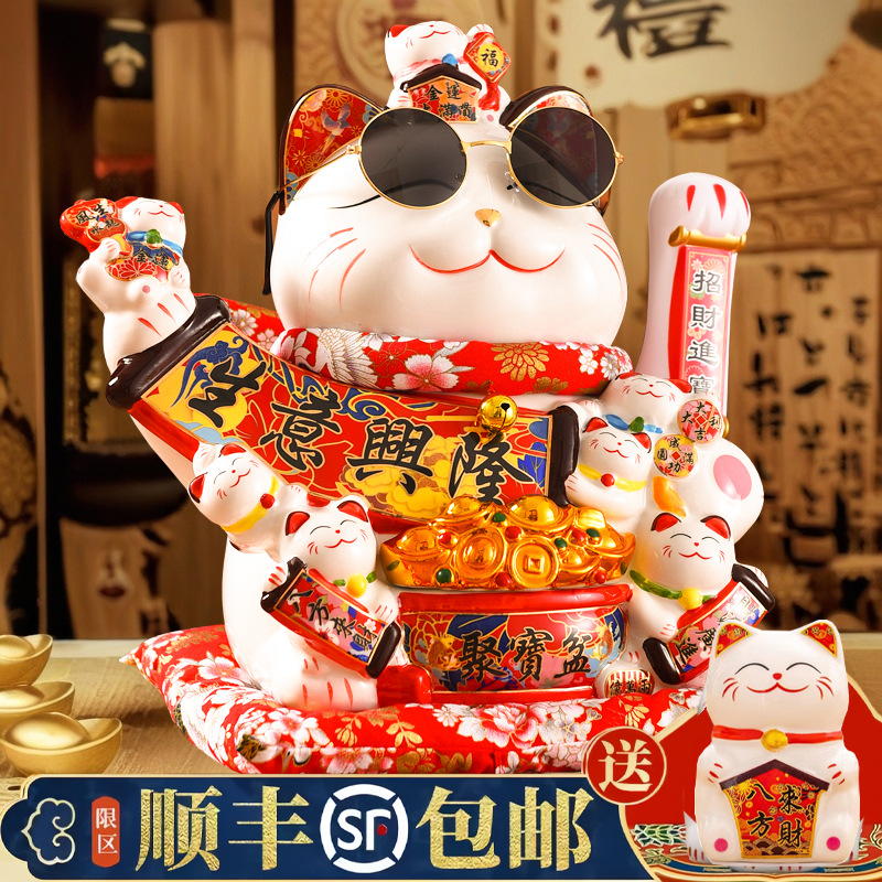 Dekorasi kucing keberuntungan untuk bisnis, Dekorasi kasir toko kucing keberuntungan bergoyang otomatis ukuran ekstra besar untuk rumah