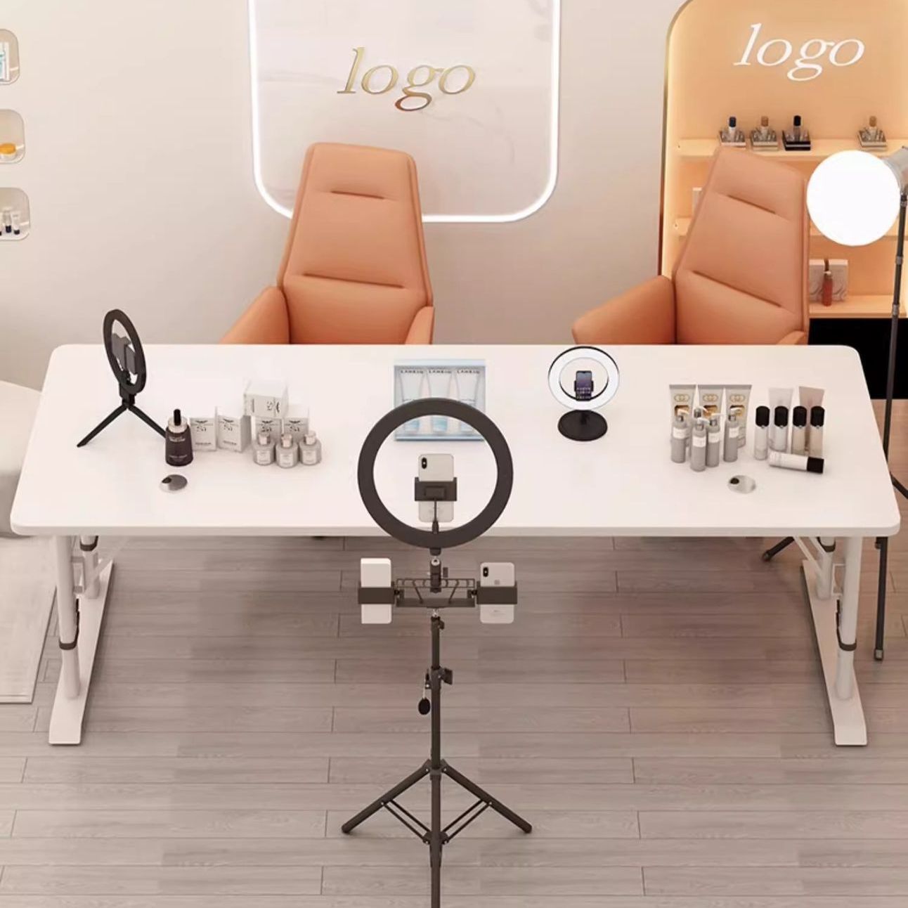 Meja Siaran Langsung Meja E-sports Dua Orang Khusus untuk Jangkar