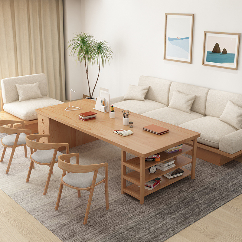 Meja tamu Nordic, Meja kayu padat pelajar rumah belajar meja tulis ganda dengan laci meja kerja