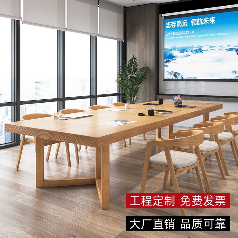 Meja kantor kayu solid Nordik, meja panjang, meja rapat untuk banyak orang, meja perpustakaan, meja negosiasi dan pelatihan, kombinasi meja dan kursi sederhana