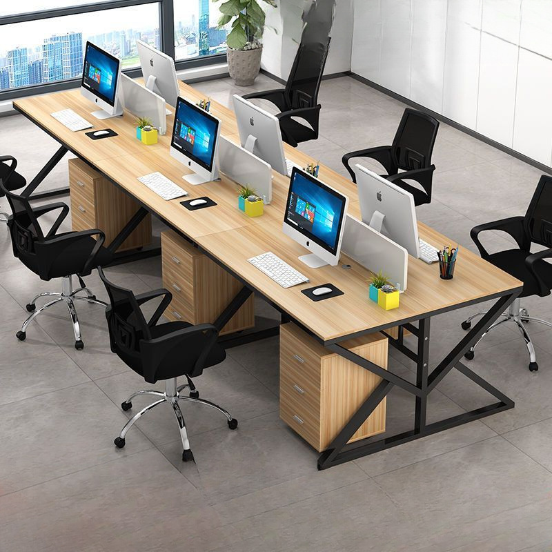 Meja Staf Meja Komputer Kantor Staf Modern Sederhana dengan Partisi Kombinasi Tempat Kerja Empat Orang Enam Orang