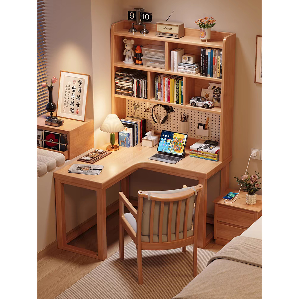 Meja sudut kayu solid rak buku berbentuk L meja belajar dinding sudut kamar tidur rumah tangga meja komputer dengan lubang