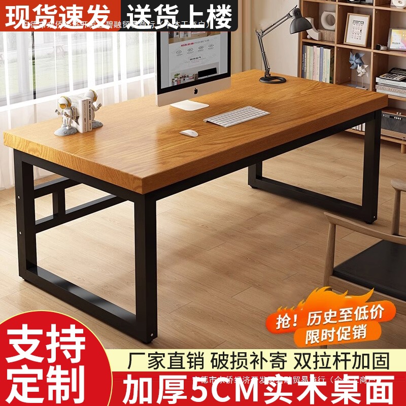 Meja Komputer Kayu Solid Meja Kerja Kantor Seni Besi Modern Sederhana Rumah Tangga Kamar Tidur Meja Panjang Dua Orang Meja Kerja