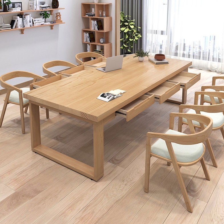 Meja tamu kayu Solid mobien, meja kerja rumah dengan laci banyak orang meja belajar santai area negosiasi meja dan kursi