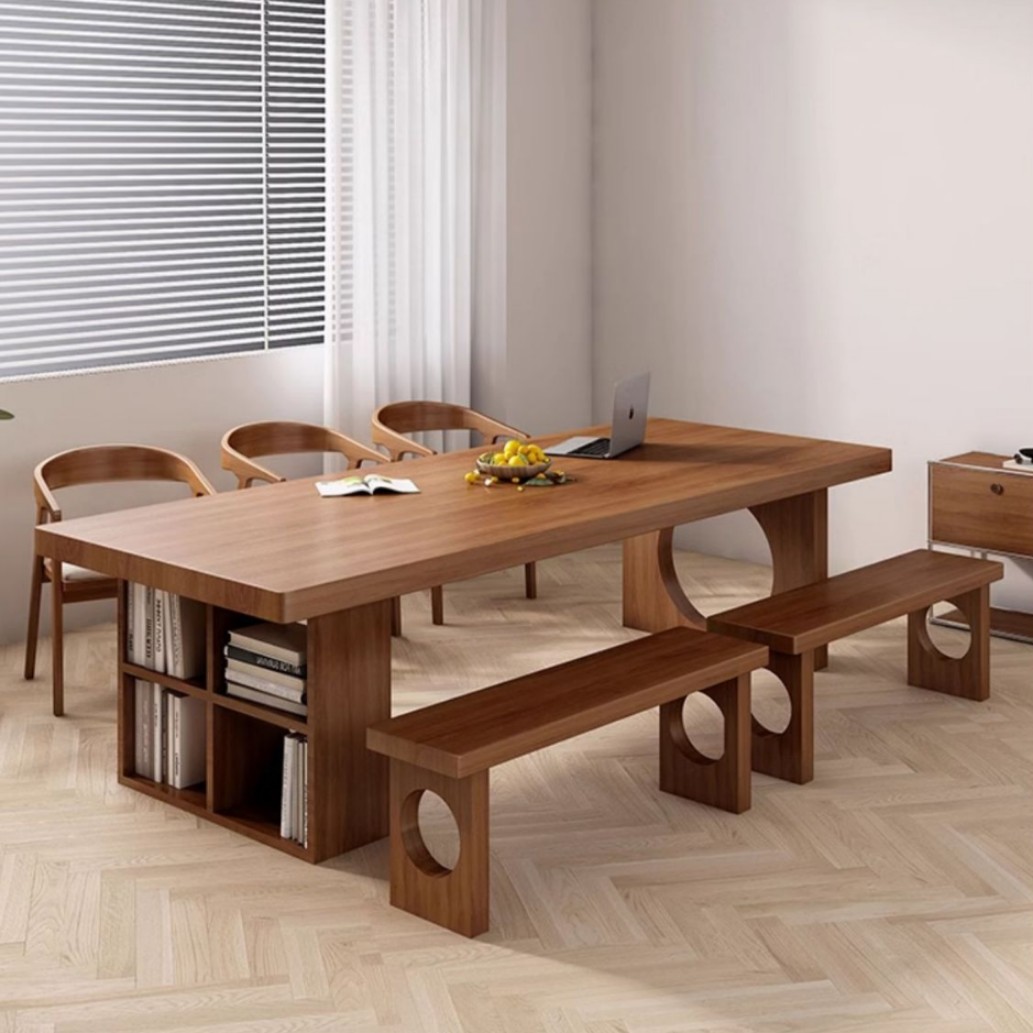 Meja Kayu Solid Dua Lapis Kayu Solid Sederhana Modern Meja Konferensi Meja Kerja Panjang Meja Meja Kerja Kombinasi Meja dan Kursi