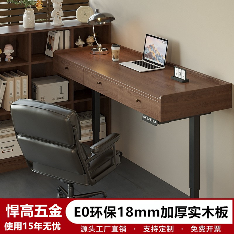 Kayu Solid Meja Double Down Meja Listrik Meja Komputer Warna Kenari Meja Ganda Meja Belajar Anak dengan Laci