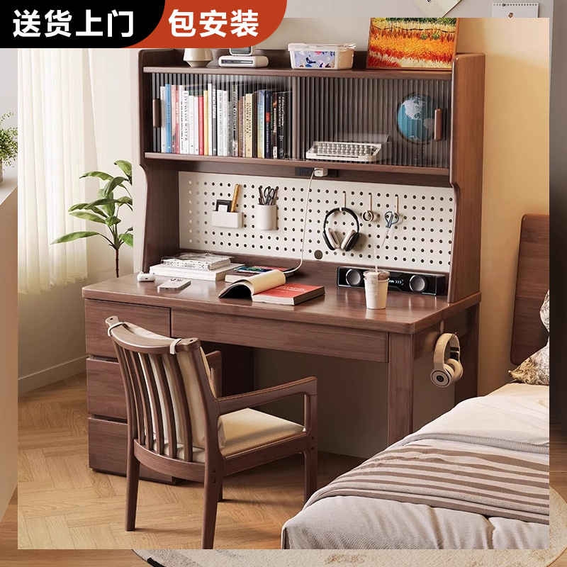 Meja Kayu Solid Rak Buku Rak Buku Meja Komputer Kantor Siswa dengan Soket Multifungsi Kamar Tidur Rumah Tangga