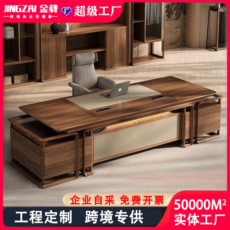 Meja Presiden Meja Kulit Kayu Ukin High-end Meja Kantor Pemimpin Modern Kantor Bos Meja dan Kursi Kombinasi