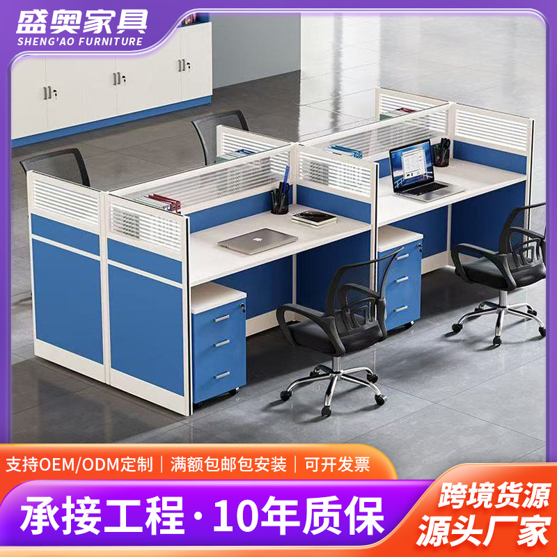 Meja Staf Meja 4/6 Orang Meja Staf Kombinasi Meja dan Kursi Kantor Kantor Layar Modern Sederhana