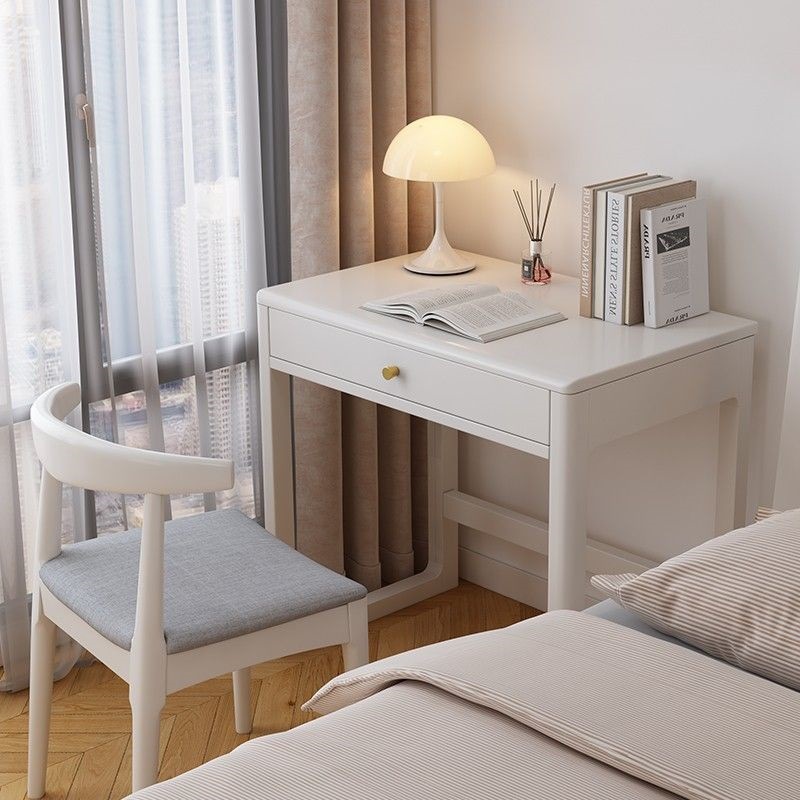 Meja Belajar Nordik Meja Rias Rumah Kecil Warna Putih Kayu Solid Meja Komputer Kantor Sederhana Modern 60/70CM
