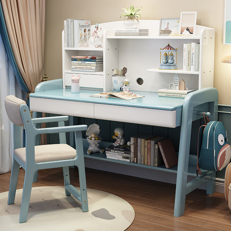 Meja Kayu Solid Rak Buku Meja Terintegrasi dengan Laci Meja Siswa Kamar Tidur Rumah Dapat Diangkat Meja Belajar Siswa SMP dan SMA