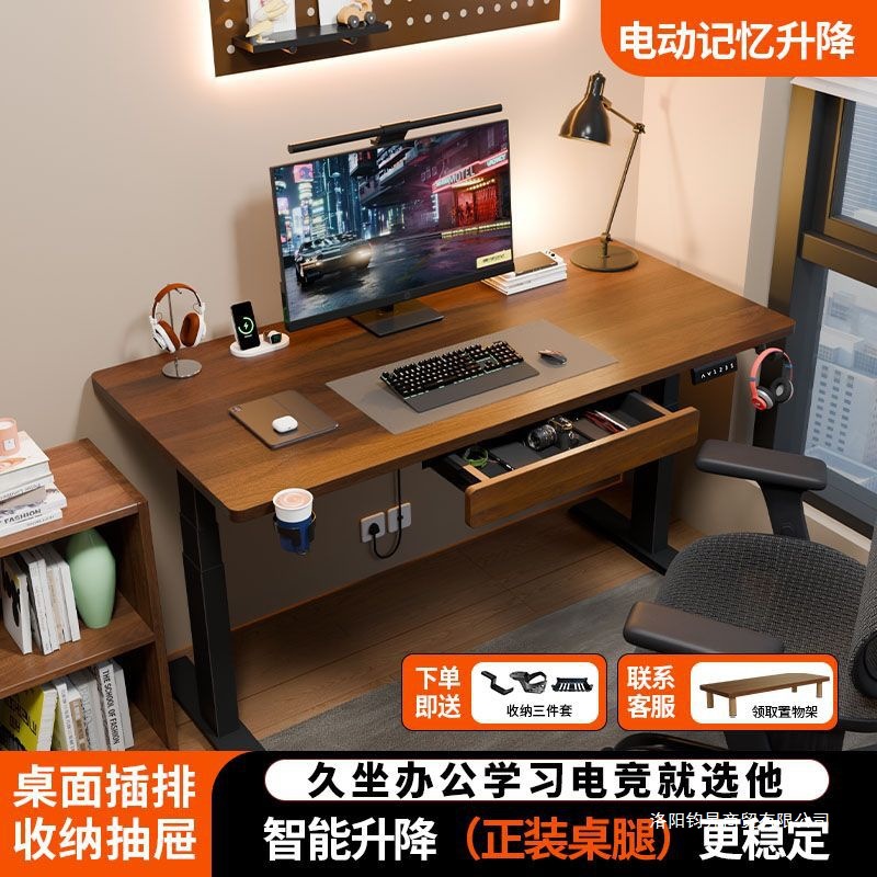 Unggulan Upgrade Kayu Solid Meja Lift Listrik Meja Komputer Kantor Meja Belajar Instalasi