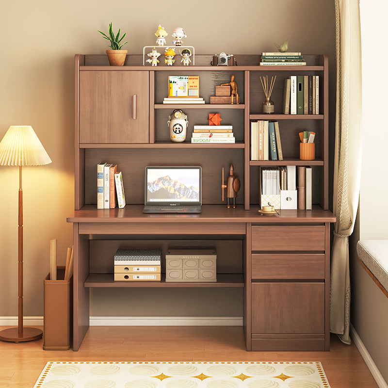 Meja Komputer Kayu Solid Rumah Tangga dengan Rak Buku Meja Belajar Kamar Tidur Meja Kursi Kombinasi Meja Tulis Siswa