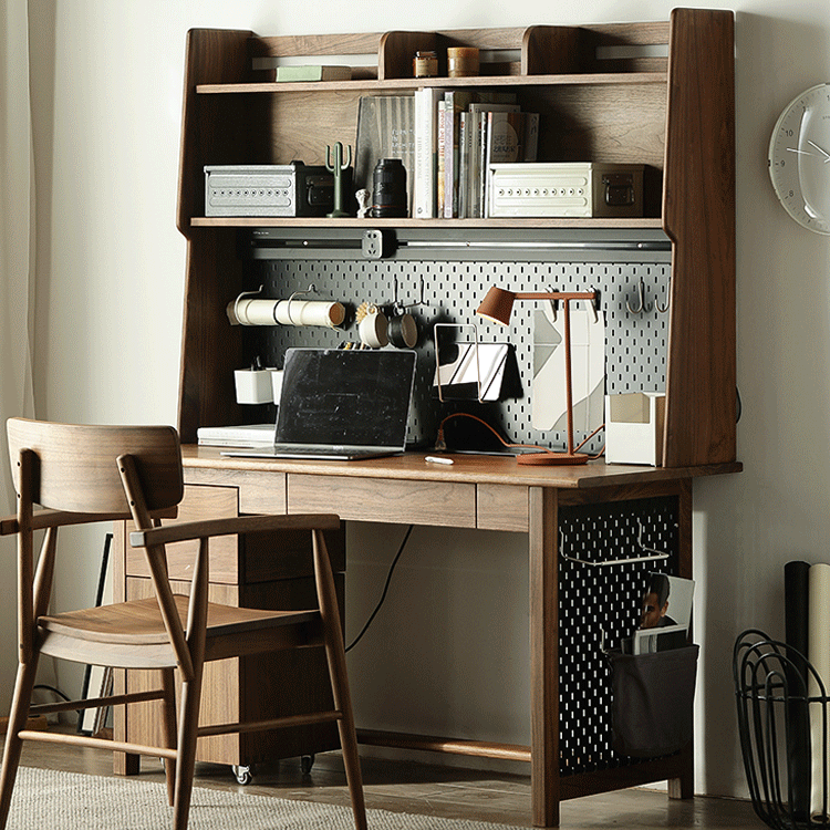Nordic sederhana padat kayu meja rak buku meja terintegrasi hitam kenari kecil apartemen kombinasi Jepang menulis kabinet meja