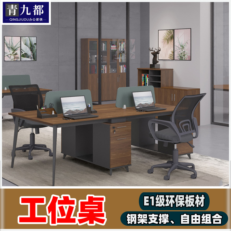 Meja staf Modern sederhana, meja dan kursi kombinasi meja kantor, empat staf, meja komputer, stasiun pemegang kartu bingkai baja