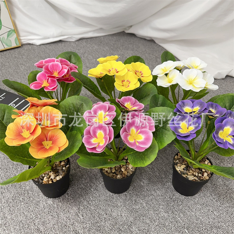 Bunga Primula Lukisan Minyak Pastoral 12 Garpu Pansy Dekorasi Jendela Pusat Perbelanjaan Bunga Sutra Proyek Luar Ruangan Lansekap Bunga Palsu Tanaman Pot
