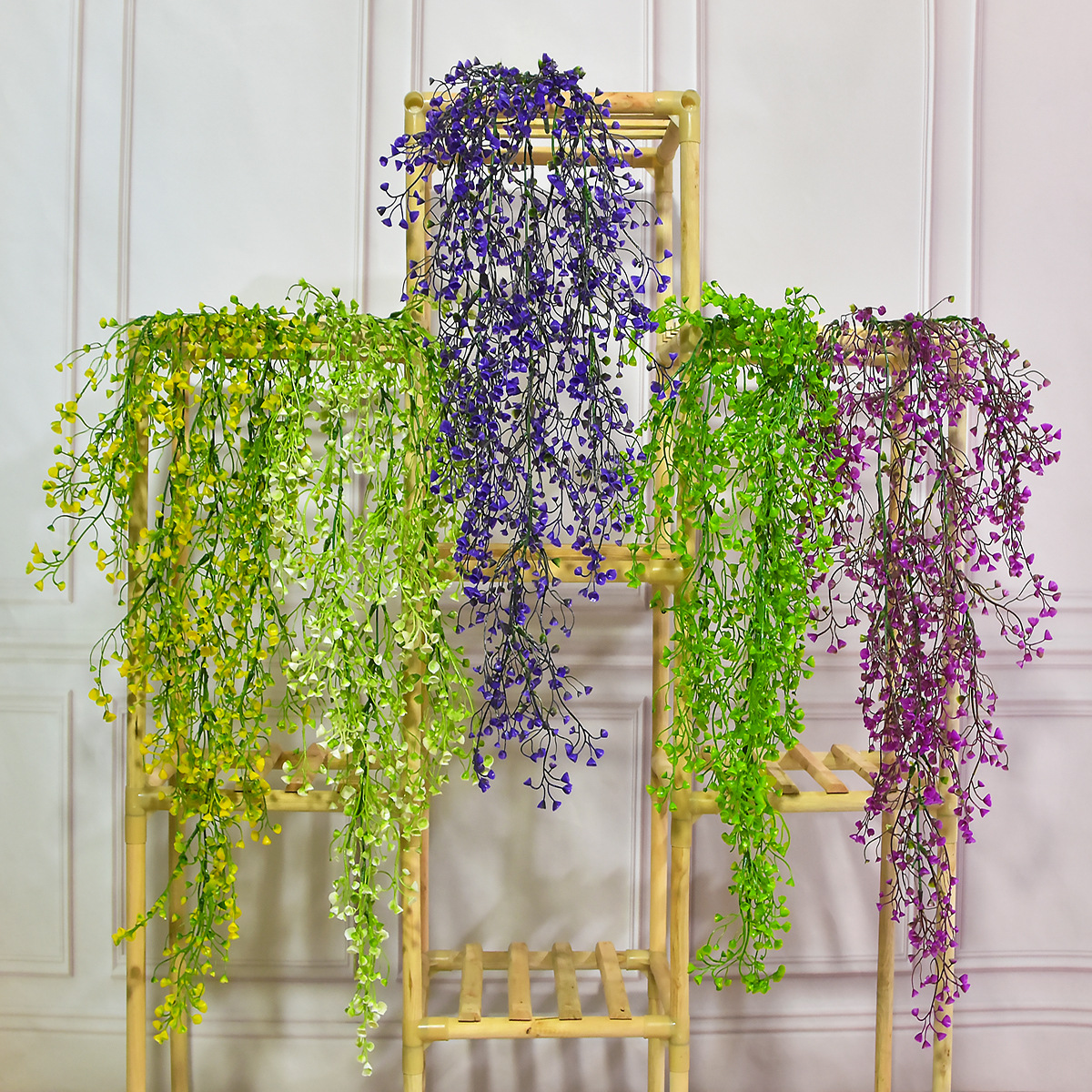 Bel gantung dinding tanaman hijau buatan, lonceng emas Dedalu plastik dekorasi dinding rotan lembut dekorasi taman lanskap dinding tanaman