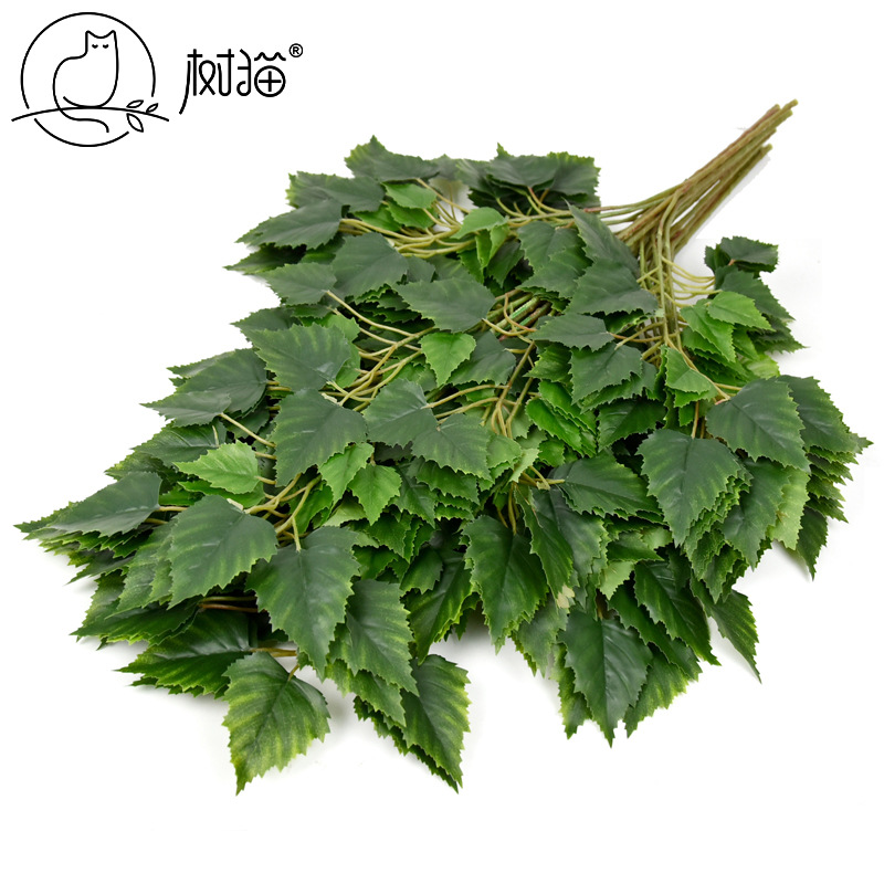 Pabrik grosir simulasi daun birch palsu cabang merasa tanaman daun taman dekorasi teknik 5 garpu daun birch
