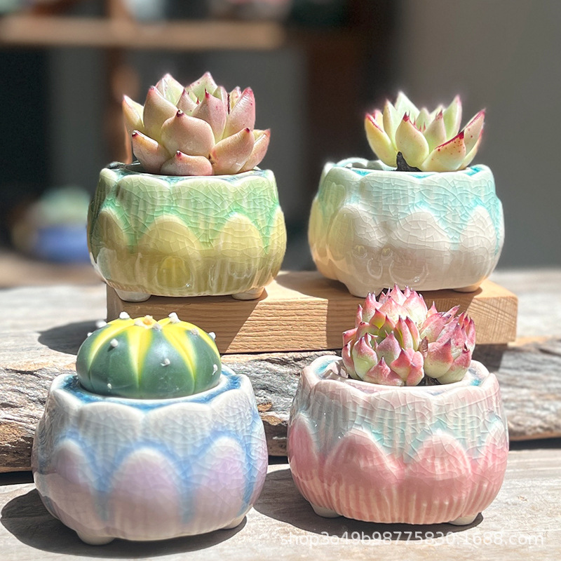Pot Bunga Berdaging Gaya Nordik Sederhana Wadah Lanskap Kreatif Warna Gradien Lotus Kecil Tanaman Pot Bunga Pabrik Grosir