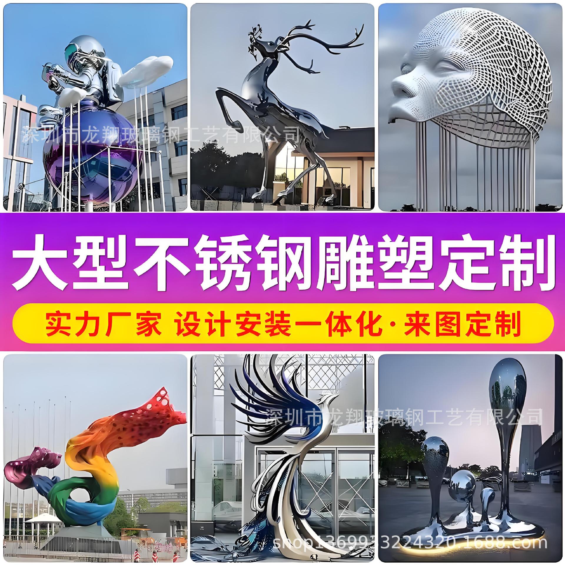 Galeri patung lanskap baja tahan karat besar taman luar ruangan kampus logam cermin struktur benteng spiritual