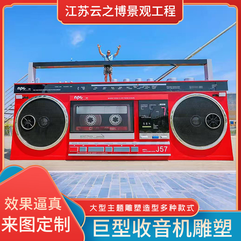 Pabrik Radio Raksasa Pasokan Retro Nostalgia Model Seni Besi Luar Ruangan Ornamen Besar Radio Patung