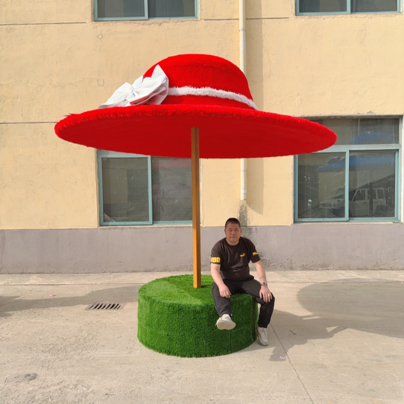 Selebriti Internet Kartu Kreatif Rotan Berukir Hijau Topi Jerami Raksasa Taman Hiburan Pantai Gazebo Pemandangan Pantai