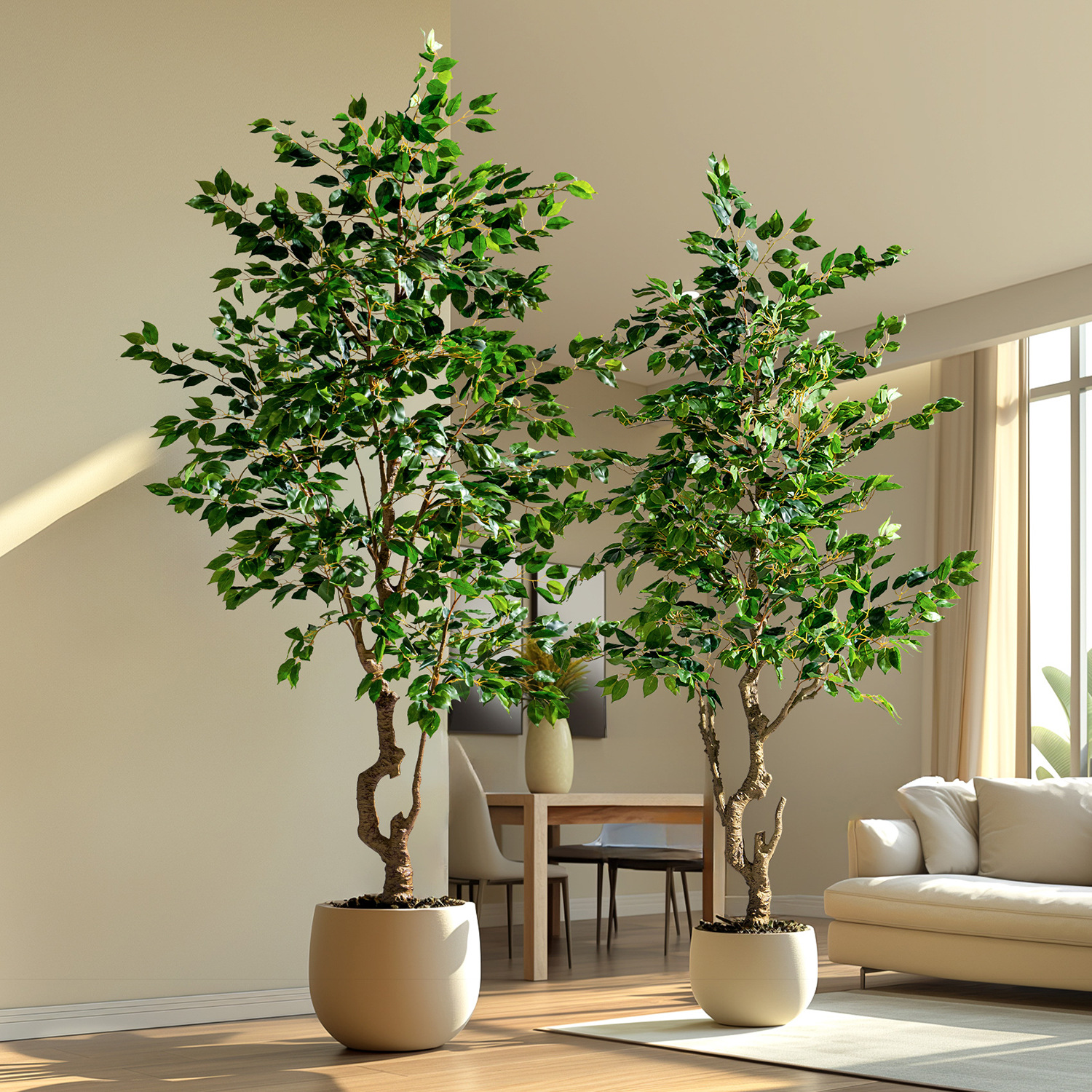 Pelindung Terik Matahari Model Baru Beringin Imitasi Tanaman Hijau Imitasi Kelas Tinggi Dalam Ruangan Ruang Tamu Ornamen Tanaman Pot Bionik Pohon Palsu