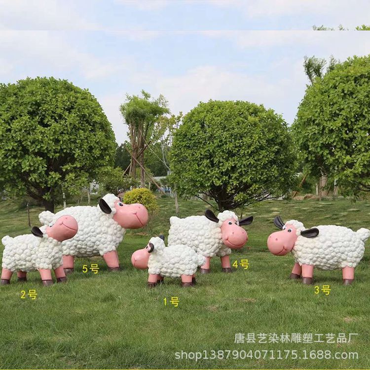 Pasokan FRP kartun hewan domba patung taman lanskap sketsa lantai dekorasi kerajinan grosir
