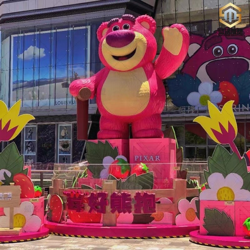 Patung Kartun FRP Strawberry Boneka Beruang Maskot IP Puppet Plaza