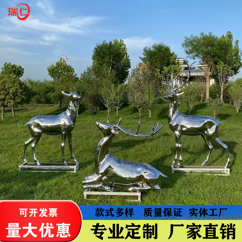 Stainless Steel Cermin Rusa Patung Area Luar Ruangan Lanskap Hewan Sika Rusa Jadi Dekorasi Lantai Besar