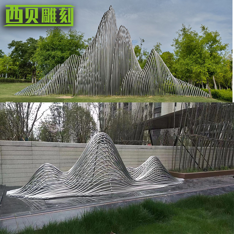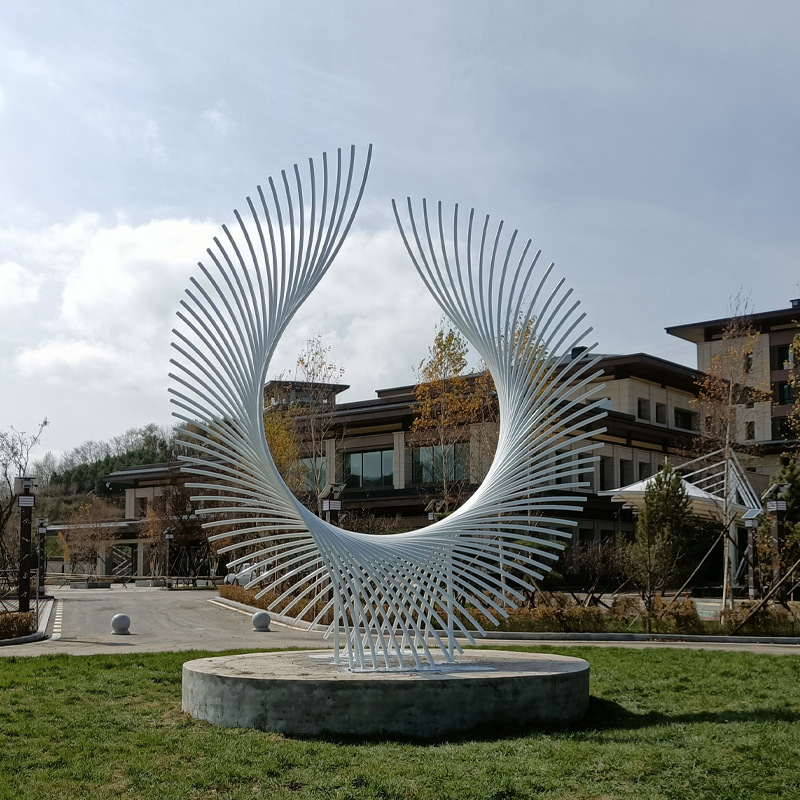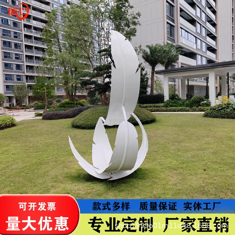 Patung kreatif abstrak baja tahan karat, ornamen dekorasi lanskap kecantikan Hotel luar ruangan bulu kustom