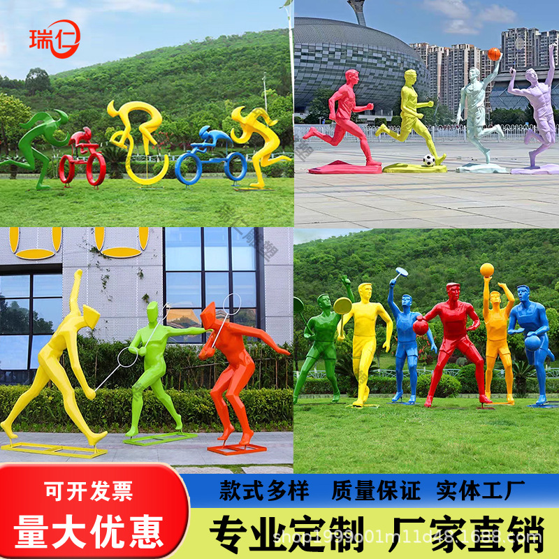 Luar Ruangan Fiberglass Figur Olahraga Patung Olahraga Atletik Kebugaran Lari Sepak Bola Basket Dekorasi Lanskap Bulu Tangkis