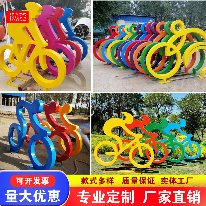 Galvanized Plat Sepeda Patung Luar Ruangan Stainless Steel Plaza Taman Olahraga Karakter Bersepeda Produk Lanskap Produsen