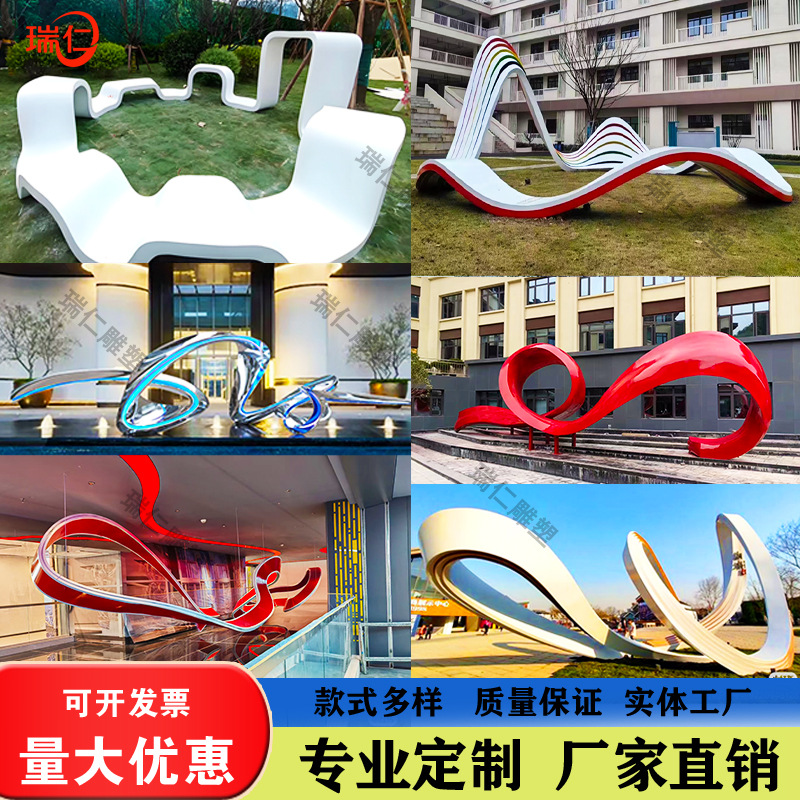 Patung pita baja tahan karat besar abstrak cermin logam pita berbentuk khusus dekorasi seni kurva lanskap taman