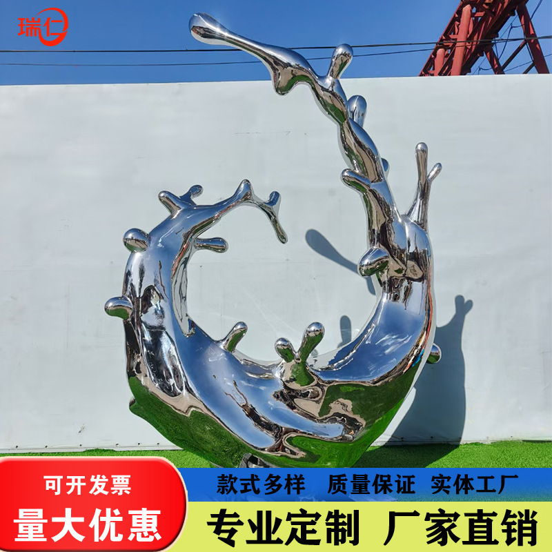 Stainless Steel Waving Sculpture Logam Abstrak Cermin Real Estat Air Tetesan Air Riak Outdoor Lanskap Air