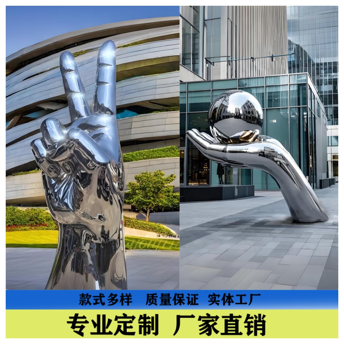 Stainless Steel Cermin Ukuran Besar Bentuk Tinju Patung Sikap Kreatif Patung Pemandangan Outdoor Ornamen