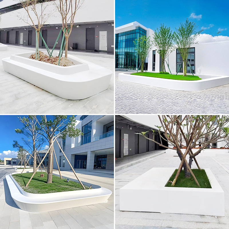 Taco Bangku Duduk Batu Teraso Kursi Kustom Taman Panjang UHPC Bangku Santai Pemandangan Kolam Pohon Beton