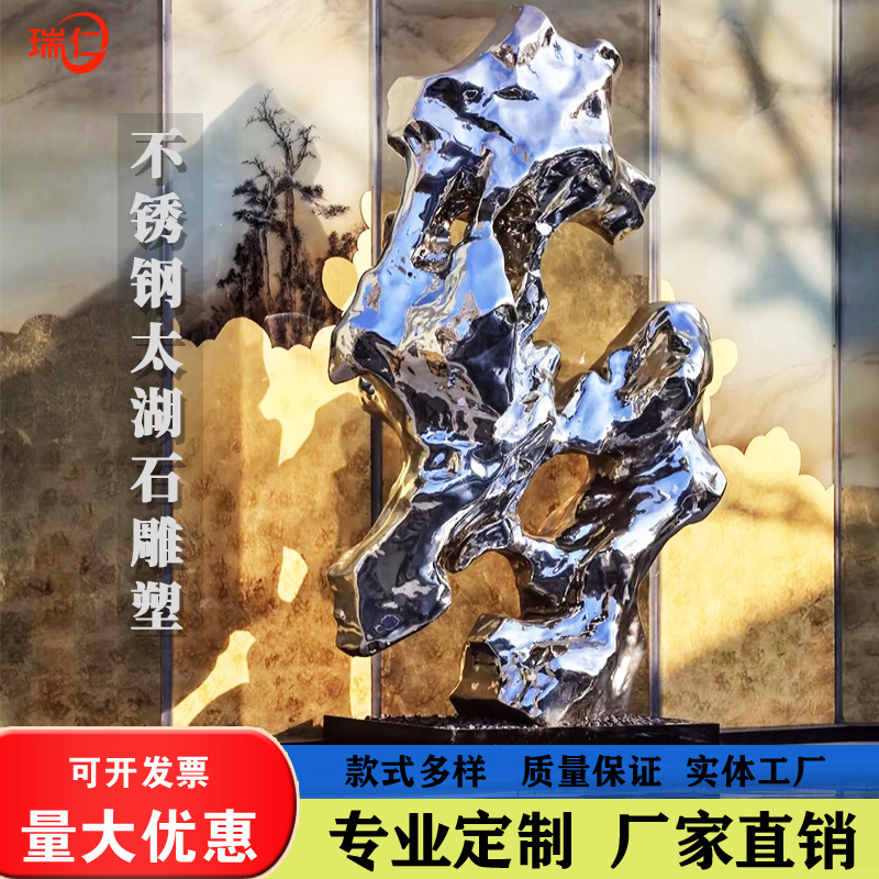 Stainless Steel Besar Batu Taihu Kustom Abstrak Cermin Bentuk Khusus Patung Dekorasi Lanskap Bercahaya Logam Bangunan Taman
