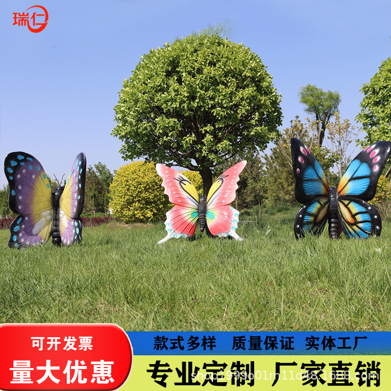 Taman Simulasi Patung Kupu-Kupu Halaman Taman Luar Ruangan Lanskap Taman Dekorasi Tata Letak Rumput Ornamen FRP Besar