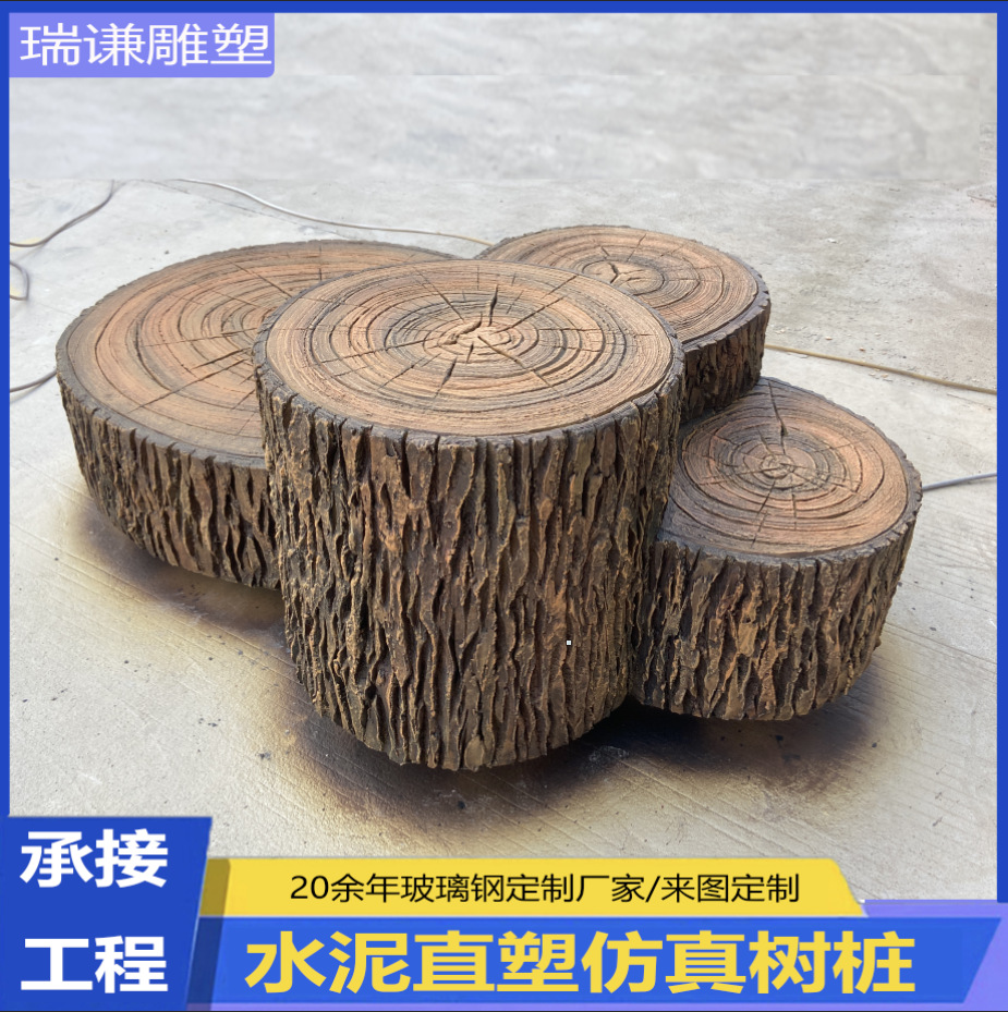 Ornamen Tumpukan Kayu Plastik Semen Imitasi Luar Ruangan Realistis Wood Imitasi Taman Indah GRC Dermaga Pohon Imitasi Semen