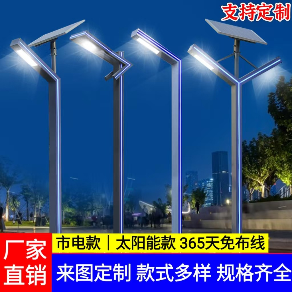 Lampu taman surya luar ruangan lampu lanskap profil besi tahan air 3 meter 7 kata lampu tiang tinggi persegi teknik kota