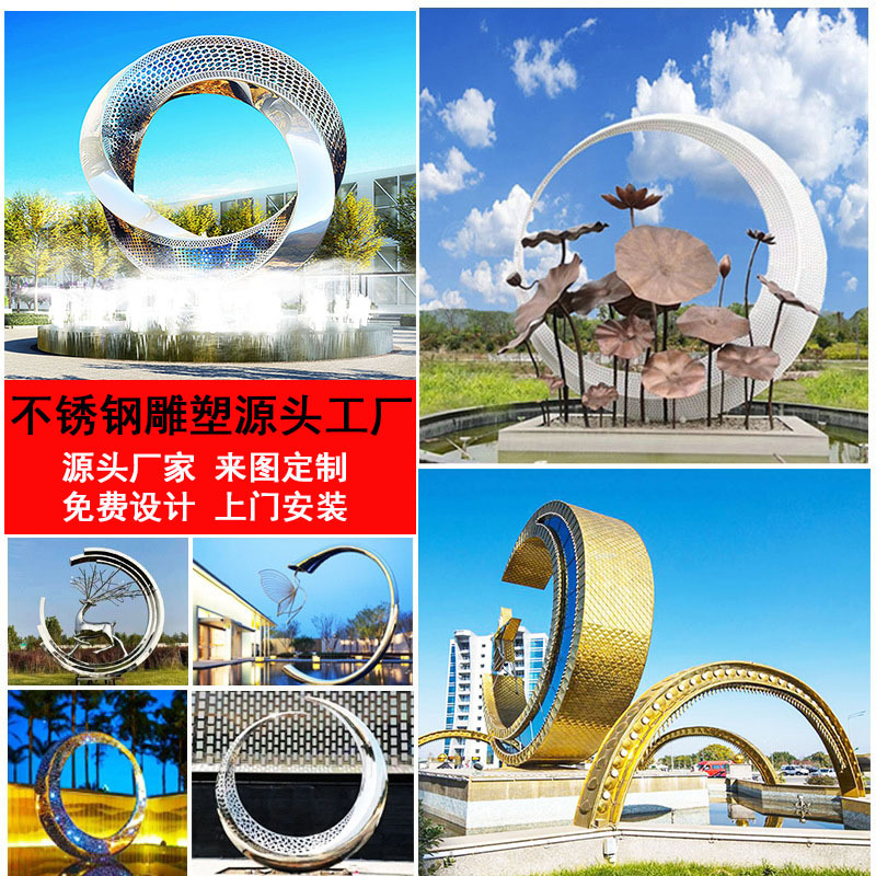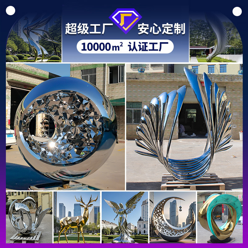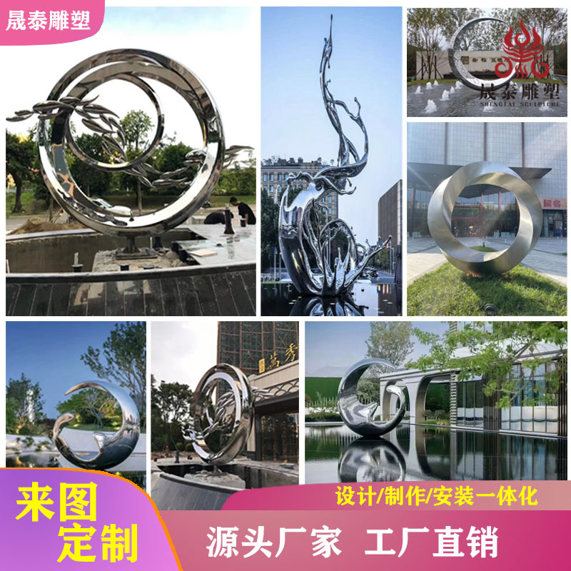 Produsen patung baja tahan karat besar, berbagai gaya luar ruangan cermin bercahaya pemandangan air baja tahan karat patung lanskap