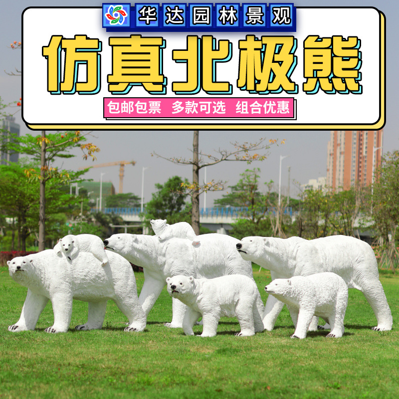 Sketsa dekorasi lanskap taman patung hewan serat kaca beruang kutub simulasi sketsa dekorasi tempat air kebun binatang