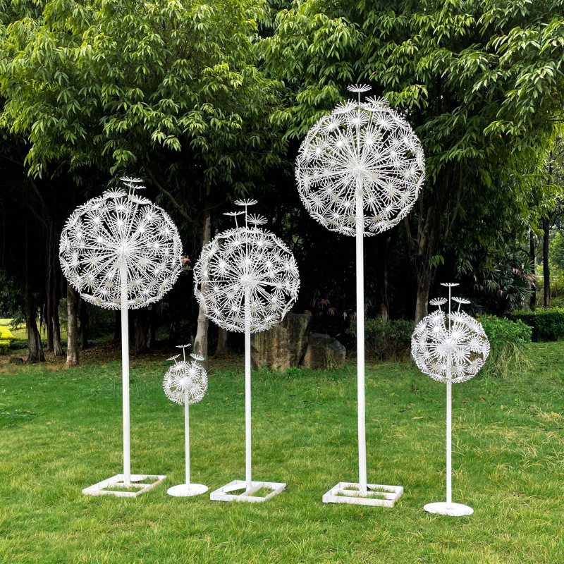 Luar Ruangan Stainless Steel Patung Dandelion Lansekap Taman Penjualan Real Estat Halaman Rumput Bercahaya Dekorasi Ornamen Besar Seni Besi