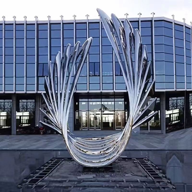 Patung lanskap baja tahan karat, penjualan luar ruangan kantor Vila Pemandangan air Dekorasi baja tahan karat patung sayap bercahaya