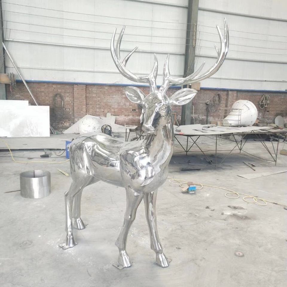 Pabrik Kustom Luar Ruangan Besar Sika Rusa Hewan Seni Berongga Lantai Ornamen Lanskap Taman Stainless Steel Patung